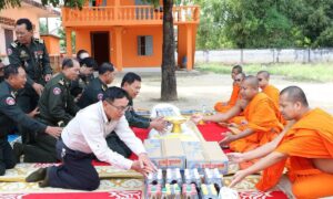 កំពង់ធំ៖ នៅព្រឹកថ្ងៃទី២៨ ខែវិច្ឆិកា ឆ្នាំ២០២៥ ឧត្ដមសេនីយ៍ទោ សោម ស៊ុន មេបញ្ជាការ តំបន់ប្រតិបត្តិការសឹករងកំពង់ធំ បានដឹកនាំសហការី នាំយកថវិកា និងទេយ្យទាន ទៅប្រគេនព្រះសង្ឃដែលមានការខ្វះខាតចង្ហាន់ប្រចាំថ្ងៃ នៅវត្តក្តីអណ្ដែត សង្កាត់ស្រយ៉ូវ ក្រុងស្ទឹងសែន ខេត្តកំពង់ធំ និងដោយមានការចូលរួមពីលោកយាយ លោកតាគណៈកម្មការអាចារ្យវត្តជាច្រើនរូបផងដែរ ។ ឧត្តមសេនីយ៍ទោ សោម...