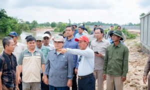 ខេត្តតាកែវ ៖ បន្ទាប់ពី លោក ថោ ជេដ្ឋា រដ្ឋមន្រ្តីក្រសួងធន់ធានទឹក និងឧតុនិយម និងលោក វី សំណាង អភិបាល នៃគណអភិបាលខេត្តតាកែវ បានអញ្ចើញចូលរួម ដឹកនាំកម្លាំងមន្រ្តី មន្ទីរ អង្គភាពជំនាញពាក់ព័ន្ធ និងអាជ្ញាធរមូលដ្ឋាន ចុះត្រួតពិនិត្យស្ថានភាពជាក់ស្តែង នៃការសាងសង់របងថ្ម ប្រវែង ១៤៨ម៉ែត...