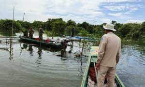 កំពង់ធំ៖ លោក ជិន ស៊ីថា នាយខណ្ឌរដ្ឋបាលជលផលកំពង់ធំ អធិការដ្ឋានរដ្ឋបាលជលផលខាងជើងបឹងទន្លេសាប និងសង្កាត់រដ្ឋបាលជលផលកំពង់ស្វាយលើ បានដឹកនាំកម្លាំង មន្រ្តីខណ្ឌជលផលកំពង់ធំ និងមន្ត្រីជាប់កិច្ចសន្យា និងគណៈកម្មការសហគមន៍នេសាទសាមគ្គីកំពង់គោ សហការជាមួយកម្លាំងទីបញ្ជាការស្រាល ចុះទប់ស្កាត់ និងបង្ក្រាបបទល្មើសជលផលនៅចំណុច: អូរតាសេក,ចុងអូរឡោ ក្នុងភូមិសាស្រ្តឃុំកំពង់គោ ស្រុកកំពង់ស្វាយ ខេត្តកំពង់ធំ នៅថ្ងៃទី០៣ ខែតុលា ឆ្នាំ២០២៥។ ជាក់ស្ដែងកម្លាំងជំនាញបានចុះសង្ក្រាបបទល្មើសនេសាទបឹងទន្លេសាប...