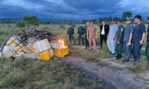 កោះកុង÷ សាច់បង្កក ដូចជា ជង្គង់មាន់ ស្លាបមាន់ ក្ដាម ជិត ១តោន ទើបត្រូវបានដុតកម្ទេចចោលមុននេះ ដោយកាលពីម៉ោង ៣ ទាបភ្លឺ នៅថ្ងៃទី១៧ ខែតុលា ឆ្នាំ២០២៥ កម្លាំងនរគបាលប៉ុស្ត ការពារ ព្រែកកោះយ៉ នៃវរ:នគបាលការពារព្រំដែនជើងទឹកលេខ២៦៩ ខេត្តកោះកុង បានឃាត់ទូក ដឹកសាច់បង្កកពីថៃ...