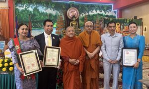 ហ្ឡាវីឡាដែលផ្យ៉ា រដ្ឋផែន្នីស៊ីវិននៀ៖ លោក នាក់ សំបូរ រដ្ឋលេខាធិការក្រសួងធម្មការនិងសាសនា បានអញ្ជើញជាអធិបតីក្នុងពីធីប្រគល់ប្រកាសនីយបត្រ ទទួលស្គាល់ពលរដ្ឋខ្មែរអាមេរិកាំង២នាក់ស្វាមីនិងភរិយា ជាមហាឧបាសិក និងឧបាសិកាពុទ្ធសាសនូបត្ថម្ភក៍ នាថ្ងៃព្រហស្បត្តិ៍ ទី១៣ ខែវិច្ឆិកាឆ្នាំ២០២៥ នៅវត្ត បាលិលេយ្យ ស្ថិតក្នុងទីក្រុងហ្វីឡាដែលផ្យ៉ា រដ្ឋផែន្នីស៊ីវិននៀ។ លោករដ្ឋលេខាធិការ បានសម្តែងការនូវកោតសរសើរចំពោះ លោក អឿ សុវណ្ណ...