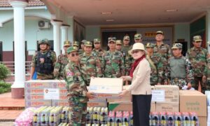 ភ្នំពេញ៖ បន្ទាប់ពីបានរៀបចំចម្អិនបាយសម្លដោយផ្ទាល់ ជាមួយយោធិននារី នៅព្រឹកថ្ងៃទី២ ខែតុលា ឆ្នាំ២០២៥នេះ លោកស្រី ចាយ ច័ន្ទរ៉ានី ភរិយាឧត្តមសេនីយ៍ទោ ហ៊ុល សំអុន មេបញ្ជាការកងពលតូចដឹកជញ្ជូនលេខ៩៩ បានអញ្ជើញចុះទៅផ្ទាល់ ទៅកាន់សមរភូមិមុខជាលើកទី៧ ដើម្បីចែកជូនបាយសម្លរចំនួន១៥០០កញ្ចប់ និងគ្រឿងឧបភោគបរិភោគមួយចំនួនជូនដល់ កងពលតូចអន្តរាគមន៍លេខ៨, កងពលតូចអន្តរគមន៍លេខ១២៨, បញ្ជាការដ្ឋានទ័ពពិសេស, កងកាំភ្លើងធំ, បញ្ជាការដ្ឋានកងទ័ពជើងទឹក...