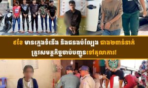ភ្នំពេញ ៖ ក្នុងរយៈពេល៩ខែ ដើមឆ្នាំ២០២៥នេះ សមត្ថកិច្ចនគរបាលជាតិ បានបង្រ្កាបក្រុមក្មេងទំនើង សរុបចំនួន ៧៨១ករណី ឃាត់ខ្លួនមនុស្សសរុបចំនួន ២.៧៩២នាក់។ អ្នកនាំពាក្យរងក្រសួងមហាផ្ទៃ លោក ទូច សុឃៈ ឱ្យដឹងថា ក្នុងចំណោមនោះ មានក្មេងទំនើង១.៨៥៥នាក់ ត្រូវសមត្ថកិច្ចកសាងសំណុំរឿងបញ្ជូនទៅសាលាដំបូងរាជធានី-ខេត្ត។ ចំណែកករណីល្បែងស៊ីសងវិញ នា៩ខែដូចគ្នានោះ សមត្ថកិច្ចតាមមូលដ្ឋាន បង្រ្កាបបានចំនួន៤៣៣ករណី...